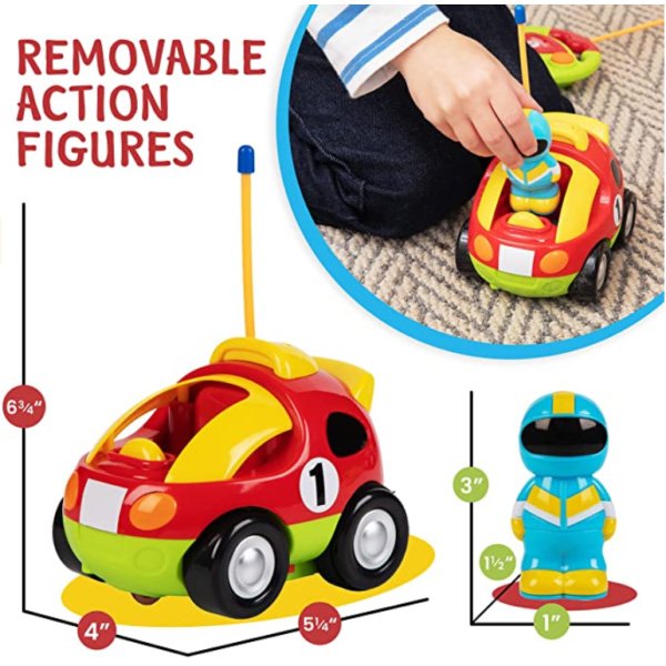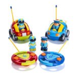 • Designed as a child’s first remote control toy car, cartoon car comes with a steering wheel shaped RC controller with only 2 buttons for easy control. Both vehicles van be played with at once to build your toddler’s Social Skills.