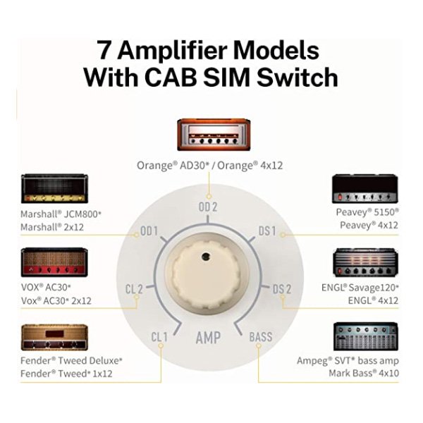 • 【7 Amplifier Models】 Multi-Pad100 guitar effect pedal features 7 amplifier models based on world famous amplifier. Each model gives you a flexible and dynamic tone.(Tweed Deluxe* AC30* JCM800* AD30* 5150* Savage 120* SVT BASS AMP*)