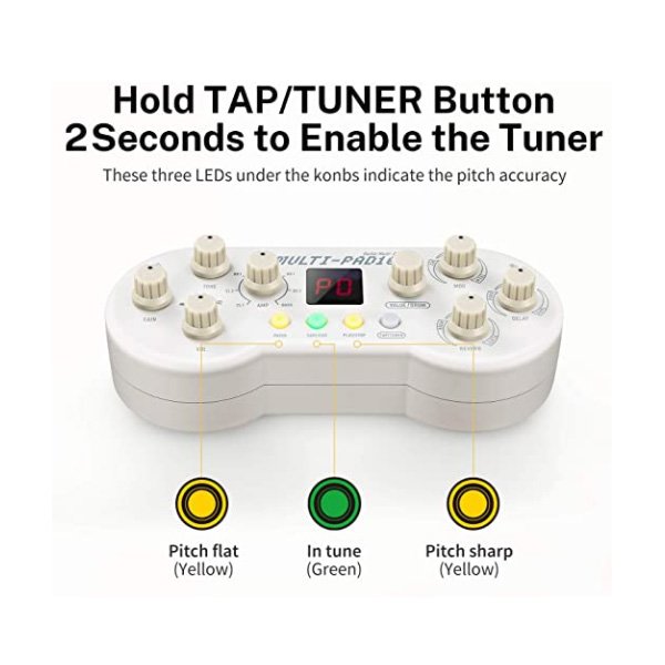 • 【40 Selected Drum Rhythms】 Multi-Pad100 guitar processor has drum machine with 40 selected drum rhythms and metronome function. It’s also built-in tuner.
