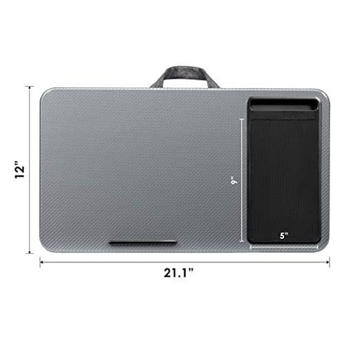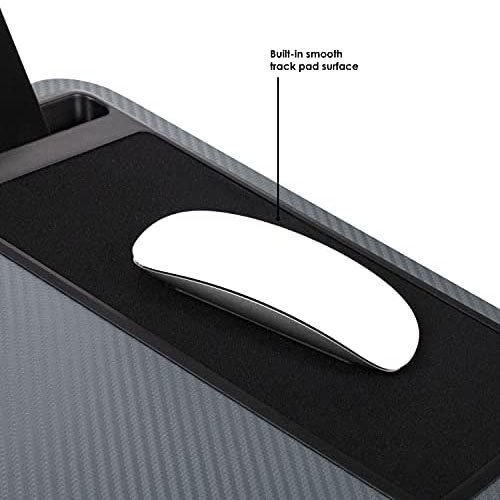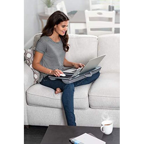 Step away from the traditional desk and experience the home office Lap Desk. The 21.1″X 12″ Work surface Fits most 15.6″ Laptops and includes a device ledge to secure your laptop in place. With the built-in mouse pad and phone slot, The home office Lap Desk is designed to make work feel effortless. The innovative Dual-bolster cushions not only create a stable work surface, but also reduce heat in your lap.