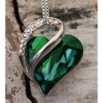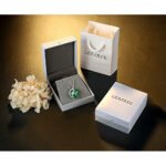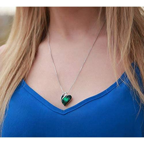 SPECIFICATIONS – Pendant Size: 0.75″ x 0.88″ |Chain Length: 18″+ 2″ |Plating: 18K White Gold Plated Silver-tone | Clasp: Lobster Claw | Stone: Sweet Heart Fancy Stone, Emerald Green; Flatback Zirconia Rhinestones, Crystal AB Color.