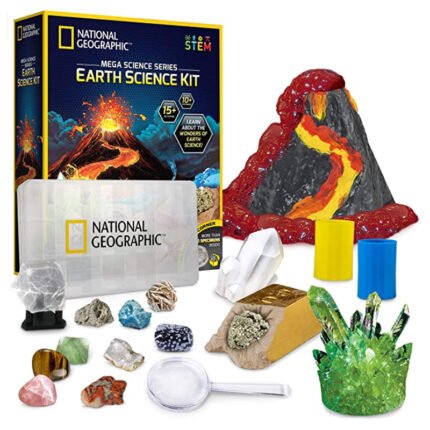 NATIONAL GEOGRAPHIC Earth Science Kit – Over 15 Science Experiments & STEM Activities for Kids, Crystal Growing, Erupting Volcanos, 2 Dig Kits & 10 Genuine Specimens, an AMAZON EXCLUSIVE Science Kit