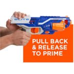 Fire and strike fast with the quick-draw Nerf N-Strike Elite Disruptor blaster. When the battle calls for swift action, take along the Disrupter blaster that primes with one smooth motion – pull the slide back and release. Check the indicator; if it’s orange, the blaster is primed and ready to fire. Ready, aim, blast!