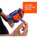 The Nerf N-Strike Elite Disrupter blaster has a 6-dart rotating drum so battlers can fire 6 darts in a row without reloading. Choose a target and blast 1 dart at a time, or unleash all 6 darts in rapid succession with the slam-fire action. The blaster includes 6 Nerf Elite darts.