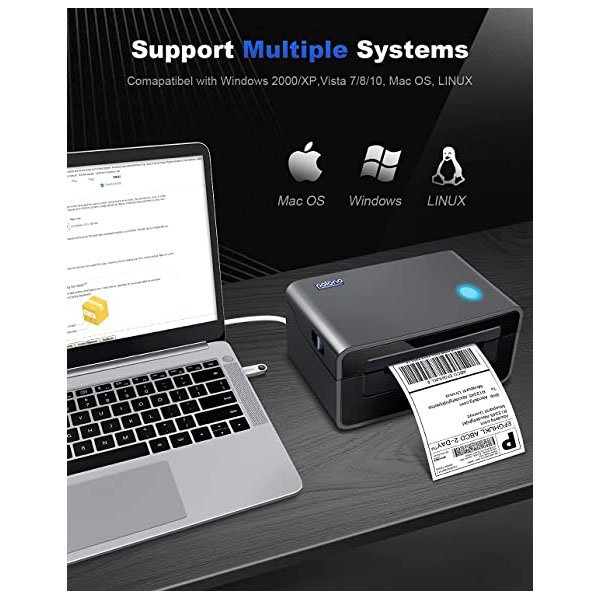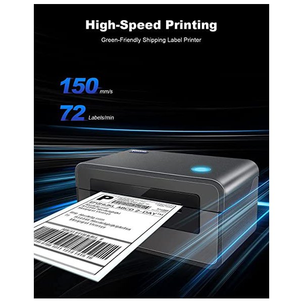 • 【Auto Label Detection】With the intelligent paper return function, our shipping label printer can automatically catch and feed the thermal label and supports label widths ranging from 1.57″(40mm) to 4.65″(118mm). This label printer is ideal for multiple labels such as shipping labels, barcode labels, warehousing labels, product labels, Amazon FBA labels and address labels.