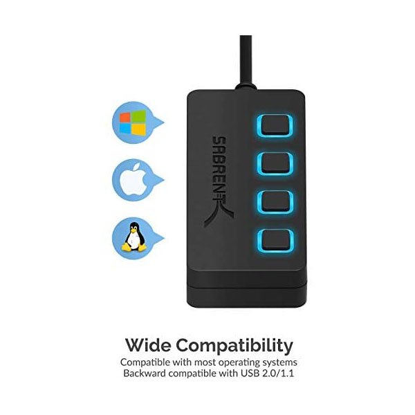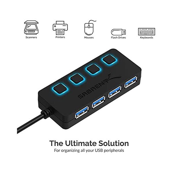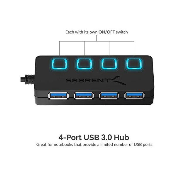 Sabrent 4-Port USB 3.0 Hub with Individual LED Power Switches